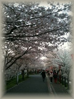 地元で有名なお花見スポット、大和高田市の大中公園と高田川の桜。地元なのに行ったことなかったのです。すごい賑わってましたよ~。屋台も50軒くらい出てて楽しい~。焼き鳥(100円)とトッポギ(500円)とビール(500円)と回転焼き(100円)をいただきました。こんな感じで川沿いに1キロくらい?続きます。途中で公園があったり、池があったり。二上山と夕焼けとライトアップされた桜。キレイだね~。 花より団子のワタシですが、たまには花見もいいもんですね。屋台楽しかったし。 はっ!結局団子やんか!!