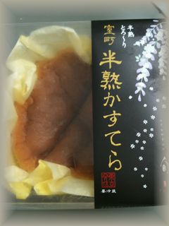 少し前の新聞で話題になっていた半熟かすてら。東京駅や品川駅ですごい行列だという。東京出張のT係長に「買ってきて~」とお願いしてました。帰ってきたT係長の手には旬風の室町半熟かすてらが!!よく聞けば、出張の時に時間がなくて買えなかったとのこと。ネットで検索して大丸まで行ってきてくれたのです~。どこの大丸やろ。。。なんと優しい!!開けてみるとこんな感じ~。14センチくらいで1260円。和三盆を使っているんだって。日本は高温多湿だから、今まで作るのがなかなか難しかったそうです。中はとろ~り、とまではいきませんが、確かに半熟な感じ。そして、とっても甘いです。ふわふわ、しっとり、不思議な感じ。一度お試しください。旬風 エキュート品川店 (スイーツ(その他) / 品川、北品川、高輪台)★★★☆☆ 3.0