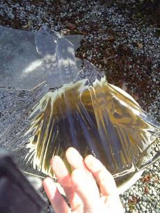 そんなに冷えてると思わなかったんですが…すごい氷玄関先の手水鉢に張ってた氷です。いや、確かに山の中ですが…朝10時半を過ぎてんのにこの氷ですか考えたら自然に氷が張ってるの見るの何年ぶりかしら。子供のころは学校に行く途中なんかでよく見かけたもんですけどねぇ。ちなみに可愛いさくらこちゃんは2日続けて脱走かましてました。怒られるの分かってるから、母が迎えに行ったら喜んですっ飛んで来たそうです。一人で帰ると怒られるからね家に近づくと散歩紐を離して「つなげ」と。いかにも母に連れて帰られました、っていう体裁をとりたいらしいです。頭いいんだか悪いんだか。ちょっとしょんぼりさくらこちゃん。