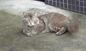 今日はここ数日中で一番冷え込んだ気がします。昼には雪が舞ってたもんなぁ。そんな中を勤め先のウサギのお薬をもらいに動物病院へ行ってきました。待ってる間にウサギの雑誌読みよみ。すると…「お薬(や流動餌)をやるときは仰向けにしてはいけません」て書いてある仰向け…ではないけれど、かなり横向きであげてるんですが大丈夫なのか?時々鼻ちょうちん状態と聞くし。別の女性がピストンでお薬あげたときなんて、勢い余って鼻に注入白ウサがぶしぶしクシャミしてたら、もう一匹の黒うさぴょんがごつごつと頭突きをしてきたことも有ったそうです。見かねて助けに入ったのかなぁ。その雑誌ではウサギを散歩させる事を「うさんぽ」といってました。ウサギの散歩でうさんぽ…。なんて可愛いのでしょう女子高生に「写メ撮らせて下さい!」って声かけられたりするそうです。新たなナンパテクとして使えるかもですね 近所のにゃんこグレ子さん(仮名)夏には毛を刈られてます。