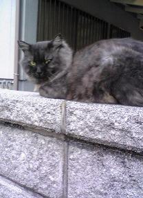 久々にご近所にゃんこのネタを。最近全くうしじまさんを見かけなくなり。黒ちゃんも何日かにいっぺん程度しか姿を現しません。が。グレ子さんにはしょっちゅう遭遇するようになりました。大体お気に入りの塀の上に居る事が多くて。こんな感じの「何ぞ?」って雰囲気でねめつけて来ます。いつ見ても目つき悪くてガラ悪そう。見るからに悪役顔なんですが。先日夜表に出たとき、目の前にグレ子さんが居て。お隣さんが玄関灯点けてたのでお顔が見えたのですが。…顔ちがう…。お目目くりくりぱっちりの可愛い子ちゃんがたたずんでて。「あれ?猫違い?」と思ったけど、お尻尾の形とかどう見てもグレちゃんだし。第一この近所に長毛の猫はグレちゃんしか居ないし。それでも暗かったのでイマイチ自信が無かったのですけど。今日仕事から帰って来たら駐車場の入り口にデンと陣取ってるグレ子さんの姿が。退いてくれないかな~と思ってたんですが、「ワシが退くか貴公が退くか二つにひとぉ~つ!!!:」と言わんばかりにこっち見てて。近づいて行っても「ワシの屍を越えてゆけ!!!!」って感じでびくともしない。…もちろん避けさせていただきましたでも悔しいからお写真だけでも撮らせていただこうと近づいたら。かなり日も落ちてたので…あのプリティフェイスになってました証拠写真暗かったから分かり難いなぁ。ほんとに黒目ぱっちりで可愛いのです。普段のグレちゃんがブラックグレちゃんなら、今日のグレちゃんはホワイトグレちゃんて感じ。いっつもこのお顔だといいのになぁ。