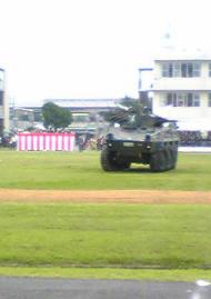 …と言っても模擬戦ですが。某所にて自衛隊のお祭りがあり。その中で模擬戦もあったので見てきました。感想。音でかい!いや、あたりまえっちゃ当たり前なんですが順番的には・ヘリで視察・バイクで偵察・戦車&何かでっかい筒乗っけた武器登場・どんぱち・戦車突っ込む・制圧って感じでした(適当すぎ?) 戦車&ヘリ。…やっぱ「やわらか戦車」とは訳がちがう。 ↓右のヘリは展示してあっただけで今回飛んでませんが。並んでた中で一番丸っこくて可愛いので撮ってみました。何かイナゴっぽくありませんか?戦闘の方は機銃掃射、って言うんでしょうか?良く分かんないんですが銃が軽い「パパパパパッ!」って音立ててずっと鳴り続け。思わずこんなもん避けれるか!当たったら死ぬやん!なんて思っちゃいましたが。…殺し合ってんだってば戦車がボガンと火ィ吹いた時は、音おっきいのは分かってましたが想像以上で。子供はギャーと騒ぎ。犬は慌てふためいてました。 戦車のファイヤー&慌てふためく前のわんこ。テレビの報道なんかで聴く音ではありましたが、生で聴くとやっぱり本能的な恐怖を感じ。3回位連続で戦車&でっかい筒の攻撃で音聴くと模擬戦と分かっててもちょっと耐えられない感じ。周りみんなそうだったみたいで、毒気抜かれたというか半放心状態というか。制圧したあとで「ぷっぷくぷ~」とラッパが鳴ったときに緊張の糸が切れ、何かみんなホッとしてちょっと笑いが出たり。それだけドンパチの音は強烈だったのですよ。後で資料館見学してる時にいたお婆さんが「ちょっとだけだけど戦争経験してるから、あんな戦車の砲撃の音くらい何とも無い」っておっしゃってたのが妙に含蓄がありました。平和な事は素晴らしい事です。自衛隊グッズ販売所にて。可愛いんだけど何か複雑…。