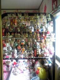 この日記にも良く書きますが、MYママンは今年還暦を迎えます。なのに。キティラーでございますつっても車の中をキティちゃんだらけにしてド・ピンクのベルサイユ状態にしてる訳では無いんですが。元妹の部屋を飾り立てるのに心血注いでたりして。主に人形やマスコット、特にご当地ストラップなんかがお気に入りです。もともとはキティちゃん鬼流行りした時に現役高校生だった妹の趣味だったんですが。奴がキティちゃんを部屋に置いたまま出てったもんで、そのままママンの趣味に受け継がれてしまいました。私が実家に泊まるときはその妹の部屋に泊まるのですが。…霊感有る人や想像力豊かな人だったらかなり怖いと思うの…。四方八方キティちゃんで、敏感な人なら視線感じて落ち着かないと思われ。目が悪いので、寝るときコンタクト外すと何も見えない視力でよかったと思います。こう言っても中々人様に分かっていただけないので。先日実家帰ったときにお写真撮ってきました。 全部は撮れなかったので半分位?買ったものもあり、いただいた物もあり。小さい子供なんかはこの部屋に連れてくると大変喜ぶのですが。この中で寝るの…勇気いります。
