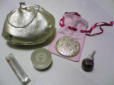 連日寒い日が続き。ほんとに魚類のDNA混ざってんじゃないかと思うくらい体温調節の苦手な私には辛い日々です。そんな時に限ってコタツ死亡エアコンもファンヒーターも普通にありますが。何と言っても冬のお供はコタツ!な私にはあまりにも過酷な現実。どうしてもコタツに足突っ込まないと落ち着かなくて。仕方ないので湯たんぽ入れてます…どんな貧乏生活だいや、エアコンもちゃんと入れてるんですけどね。閑話休題。今日仕事の帰りに何気に寄ったセブンイレブンで。ParaDo(パラドゥ)の福袋を発見。2種類あったんですが、一つはプリンセスミラー・ミラー・グロス・ネイル入りで。もう一つはポーチ・ミラー・ルージュ・ネイル・ルースパウダー入りだったので。後者を購入。こんな感じでした。左上から・ガマ口型ポーチ・シャンパンゴールド何かウルトラマンのカネゴン想像しちゃうんですが…。結構物入りそうです。・デコラティブなミラーコンパクトではないんですけど。裏っかわだけ見たら何とは無しに「テクマコマヤコン」と唱えたくなるのは私だけ?・エッセンスルージュ ベージュシンプルで使いやすそうなお色。ちょうど普段使いのルージュ購入しようと思ってたので・ルースパウダー シャイニーシャンパンゴールドルースパウダーは1個しか持って無かったのでお試しに。まだ使ってないからどのレベルのシャイニーかがちょっと心配。・ネイル ブロンズゴールドお爪噛む悪い癖があるのでネイルは使わないんですが。お手紙書いたりカード作ったりするときのデコレーションで使えるかな?というゴールドづくしでございました。こいつは春からゴージャスな。多分どれもアウトレット品なんですが、元値はルージュもパウダーも1480円だし。ネイルも400円くらいするからやっぱりお得感アリアリたまにはお洋服以外の福袋も面白いです。