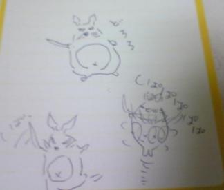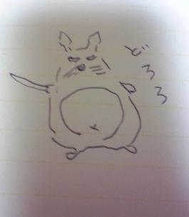 さっきまでテレビでやってた「どろろ」見てました。何となくのストーリーは知っているのですが、オタの分際でまだ原作読んだこと無く。最初の方でふと旦那さんに「どろろって男の方?女の方?」って聞いたところ。旦那さん首を振りつつペンとメモを取り。さらさらと何か描いてるなぁと思ったら渡されたのが …これでした。ええと、このやたらと性根の悪そうなトトロもどきは一体…?つか、トトロは胸のところの「へ」の字マーク必須なんですけど…。その後続きを見てちゃんと「どろろ」は認識しましたが。時々剣をふるう邪悪なトトロが脳裏をよぎってちょっと嫌でした。ちなみに昨日お写真載せたポンポン帽子。今日かぶって出かけたのですが、旦那さんが吐いた言葉は「何かアホなメーテルみたい」でした私一言もメーテルって言葉出さなかったんですが、やっぱアレ見たらみんな連想するんだなぁと思いつつ。「アホ」なメーテルが鉄郎を誘(いざな)って行く先が気になります。