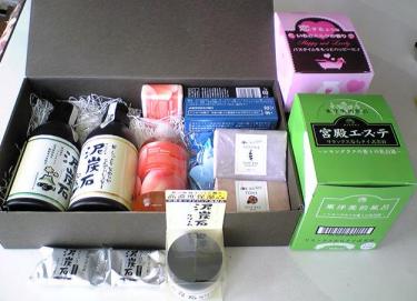 ペリカン石鹸さんで購入していたこちら3500円送料無料の福箱が到着しました。いつもネタバレ等拝見して、中身の盛りだくさん具合に息を飲んでたのですが。今回初ポチできましたたまたま御用があって年休取ってたので出先から携帯にてポチ。私にとって福袋で3500円は「清水の舞台から飛び降りる」のを通り越して「東尋坊からノーロープバンジー(普通に言えば唯の身投げ…)」並みの勇気が要りましたが。ポチして良かったでは中身を。 全体図はこんな感じです。噂に違わずもりもりと。 左:泥炭石シリーズ 右:他のやつ・泥炭石クリーム 1890円 ・アロマライズソープ ピーチ 525円・泥炭石シャンプー 1050円 ・ 〃 ハンドソープ 〃 1260円・泥炭石コンディショナー 1050円 ・オーラセントソープ ラベンダー 525円・スーパー泥炭石洗顔石鹸 1260円 ・オーラセントソープ ローズ 525円・+お試しサイズ?二つ。 ・タラソソープ(2個パック) 483円 ・スーパーマリンコラーゲン石鹸 2100円あと入浴剤 東洋美的風呂 宮殿エステ 210円×12個プチベリィ バスパウダーS いちごみるくの香り 210円×12個ざっと計算しても15000円オーバーやっぱ…すごい…。以前のネタバレではギフト用の石鹸3箱+アルファとか。入浴剤てんこ盛りとか。その時によって内容が違うようですが、今回は美容特集?最近日記書けばハラパンだの腹巻だの。友人とメールすれば風呂の中で乳は浮くだの浮かないだの。普通に話せば「今救急車で運ばれたら加トちゃ(腹巻がね)です」とか。色気のかけらも無いような人生を送りつつあるので。女性を取り戻せという天の声かも知れません。春ですし、頑張って女を磨きたいと思います。明日17日の12時30分から再販開始みたいです。「内容がちょっと変わる」みたいな事書いてるので、もしかしたらこのネタバレとはちょっと違うかもですけど。あと他のショップさんですが99円ダウニー販売中です。99円コラーゲンも出てるので気になるところ。 最近引力に負けまくっているのでコラーゲンとかヒアルロン酸とかに妙に反応してしまいます