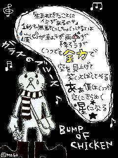 どもっ!引地礼央でございます(=゚ω゚)ノ皆さんお久しぶりでっす(●゚ ∇゚)ノひさしぶりぃーヽ(゚∇ ゚●)やっとテストが終わりましたょ。。ちなみになんで今日こんな時間に日記を更新しているのかというと・・・今日は公立高校の入試だかたです!!全国の受験生・・・O( ・`ω´・)乂(・∀・` )O FIGHT!!!話はかわるけど、昨日charさんのCDをハードオフ的なところで手に入れました。シングル一枚しかなかったのが残念でしたが、状態はよかったです。。そして、昨日はめっちゃギター弾いてました。。けど、あまりの睡眠不足に10時ならないうちに寝てましたが・・・しかもうたた寝でギターかついだまま寝てましたし。。。アブねぇよ・・・(,,゚д゚)んじゃ、最後にBUMPの画像でも貼っときますか・・・↓↓今回はグロリアスレボリューションの歌詞画です!!ちなみにグロリアスレボリューションは『名誉革命』的な意味らしいです。。