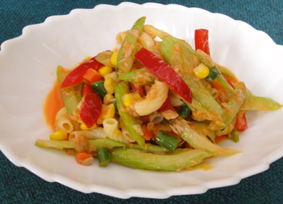 にんじんのとろ実で作ったドレッシングを使って、マカロニサラダを作りました。材料 2人分・★にんじんのとろ実 大さじ4・★白ワインビネガー 大さじ2・★オリーブオイル 大さじ1・マカロニ 40グラム・セロリ 1本・パプリカ 1/2個・ミックスベジタブル(冷凍) 適宜・ツナ缶 80グラム・塩 適宜作り方1★の材料を混ぜ合わせ、ドレッシングを作る。2マカロニ、冷凍のミックスベジタブルをゆでる。3セロリ、パプリカを薄切りにする。4全ての材料をドレッシングであえ、冷蔵庫で冷やす。ちょっと強めの酸味が食欲をそそります。酸味が苦手な方はワインビネガーの量を少なくして下さい。野菜のピューレーとろ実の料理レシピ