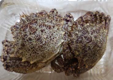 ちょっと前になりますが、ホンビノス貝を買った時に、隣に観たことのない蟹が調べてみると関東ではあまり出回ることのない蟹で毛蟹のような味と書いてあったので買ってみることに。活蟹以外は買っちゃダメと書いてあったので、ガサガサ動いていることを確認して購入。家に帰っていざ料理~パックを開けた途端、突然元気に動き出す蟹。こ、こわい・・・。私、生きてる蟹を料理するの初めてだった茹でる前に輪ゴムで足をとめましょうとネットに書いてあったけど、誰がとめるの?私には無理です。素手でさえ触れず、フライ返しにのせて鍋の中にぶん投げました。茹で上がったクリ蟹は本当に毛蟹のような味でおいしかった毛蟹より安いしねでも次回があるかは不明。だって、こわいんだもの
