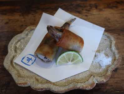 午後2時から飲める素敵なお店「すずなり」へ。どれもおいしかったお料理めひかりと大葉の春巻いちじくと焼き茄子のマリネ鴨ロースト 長ネギマリネ添