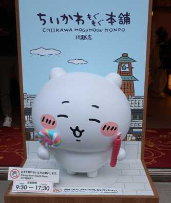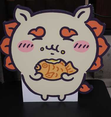 ちいかわもぐもぐ本舗に立ち寄らないとね入口のちいかわちゃん店内のフォトスポット珍しくアルコールを飲んでいないくりまんじゅう先輩たい焼きもぐもぐ中のシーサーちゃん