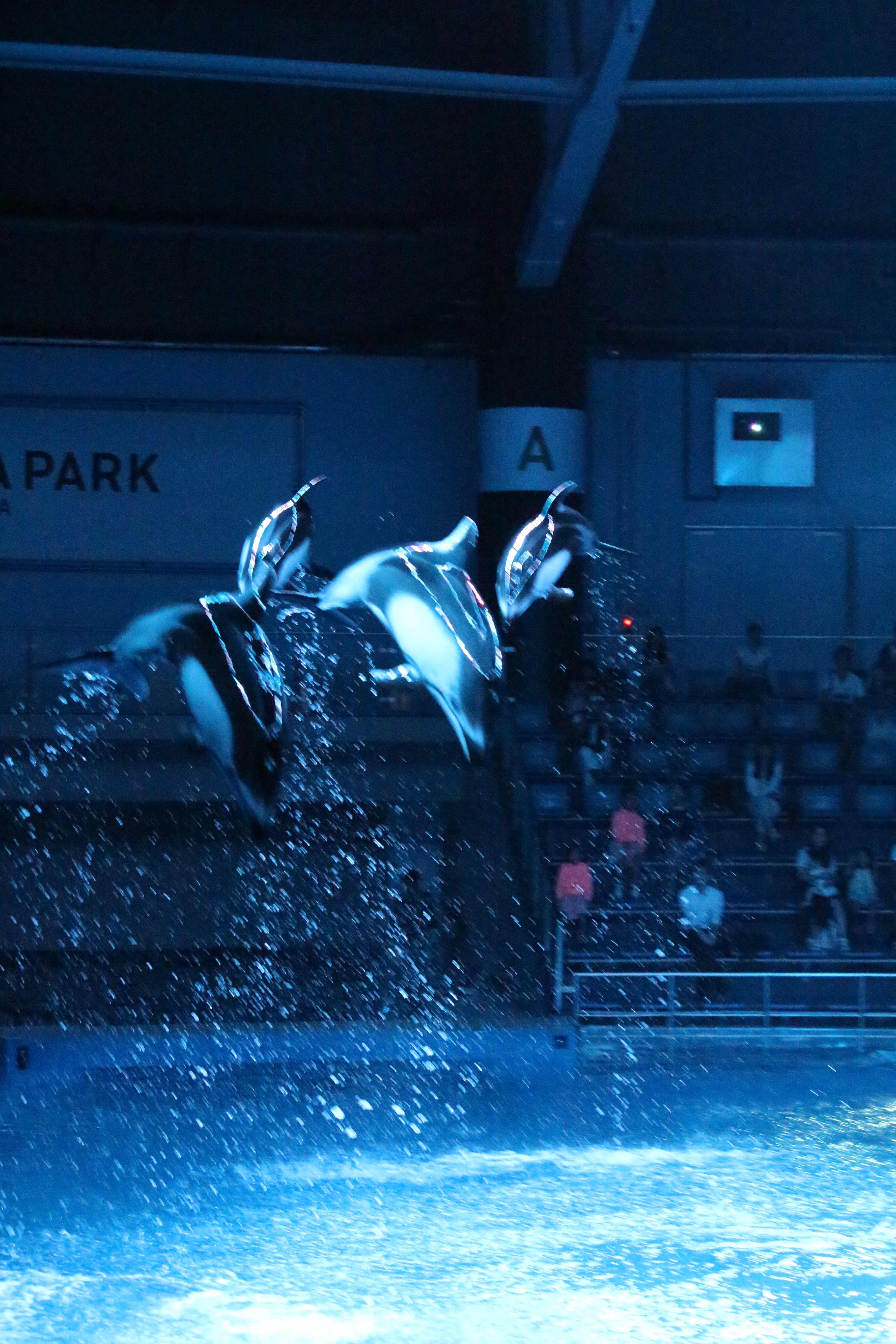 パワフルだけど、イルカさんが飛べる深さの滝壺ってあるのでしょうか。