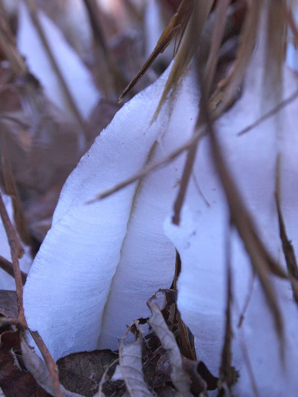 日中の日向はポカポカですが朝晩はぐっと冷え込みますするとこんなのを見ることができますシモバシラの霜華です2023.01.04 撮影