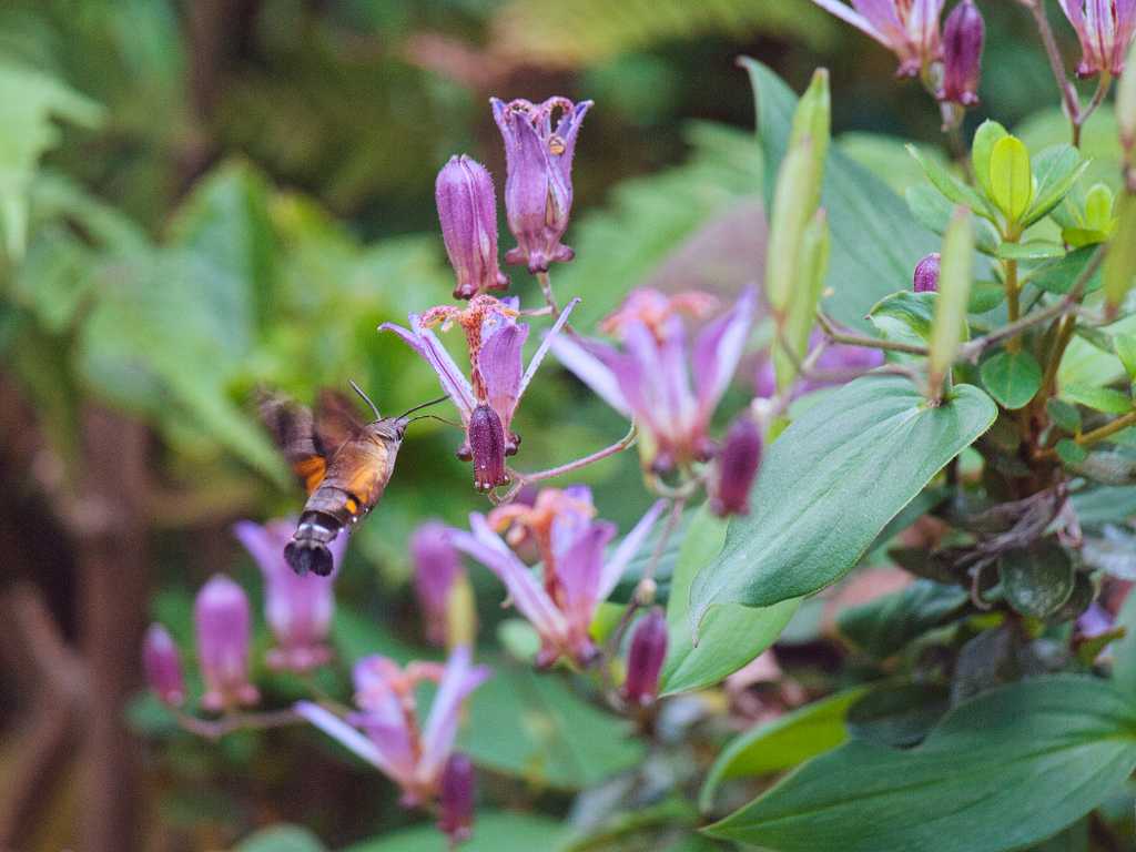 満開に近い状態のホトトギスで複数のホシホウジャクが吸蜜中曇天下で暗いキットレンズでは翅は止まりませんねわたしはコレくらいの感じが好きなんですけど2025.11.03 撮影CAMERA : OLYMPUS E-30LENS : OLYMPUS ZUIKO DIGILAL ED 40-150/4.0-5.6