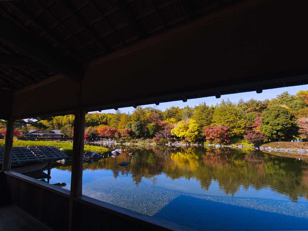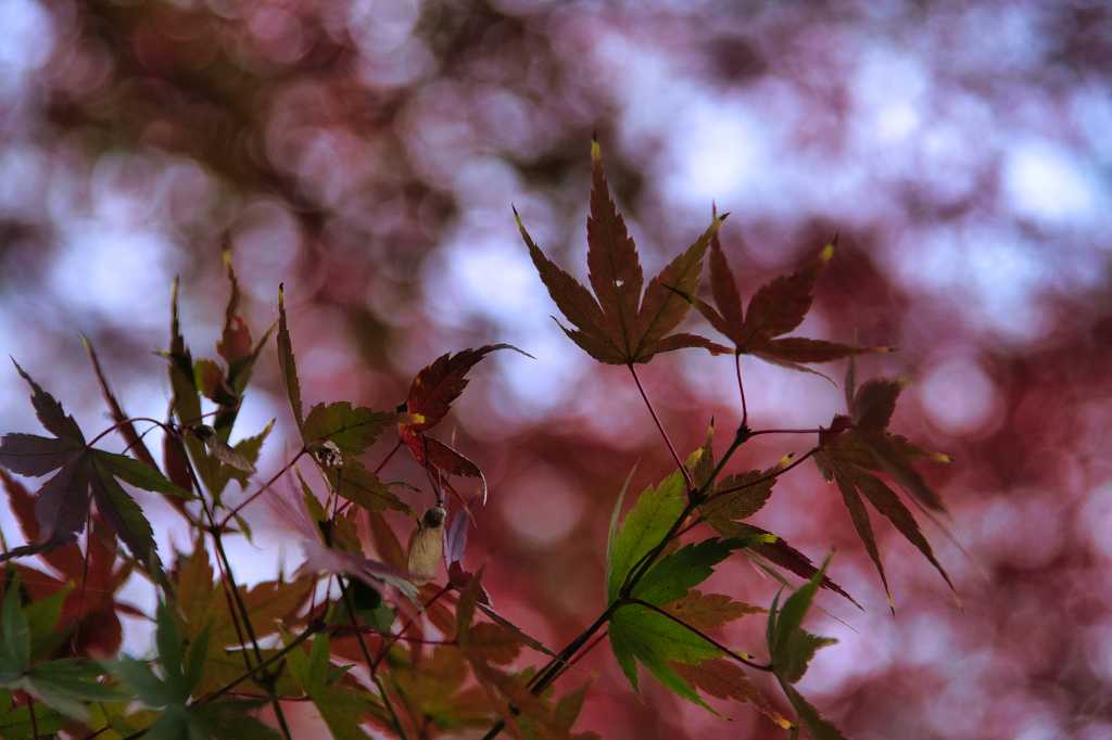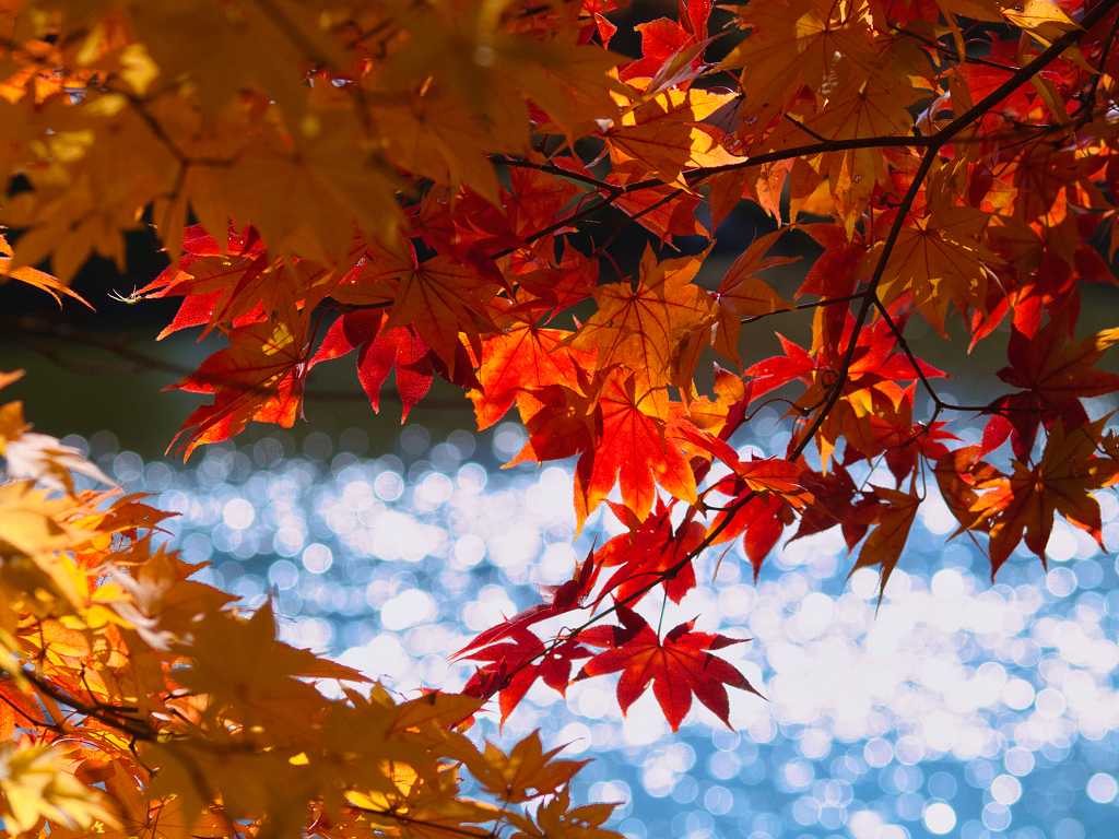 池の脇の色付いたモミジ水面のキラキラを背景にしてみました2025.11.15 撮影CAMERA : Panasonic DMC-L1LENS : OLYMPUS ZUIKO DIGITAL ED 12-60/2.8-4.0 SWD