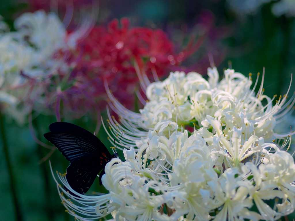 シロバナヒガンバナにやってきたナガサキアゲハ♀です光が廻っていないので分かりにくいですね2025.09.27 撮影CAMERA : OLYMPUS E-500LENS : SIGMA 105/2.8 DG MACRO
