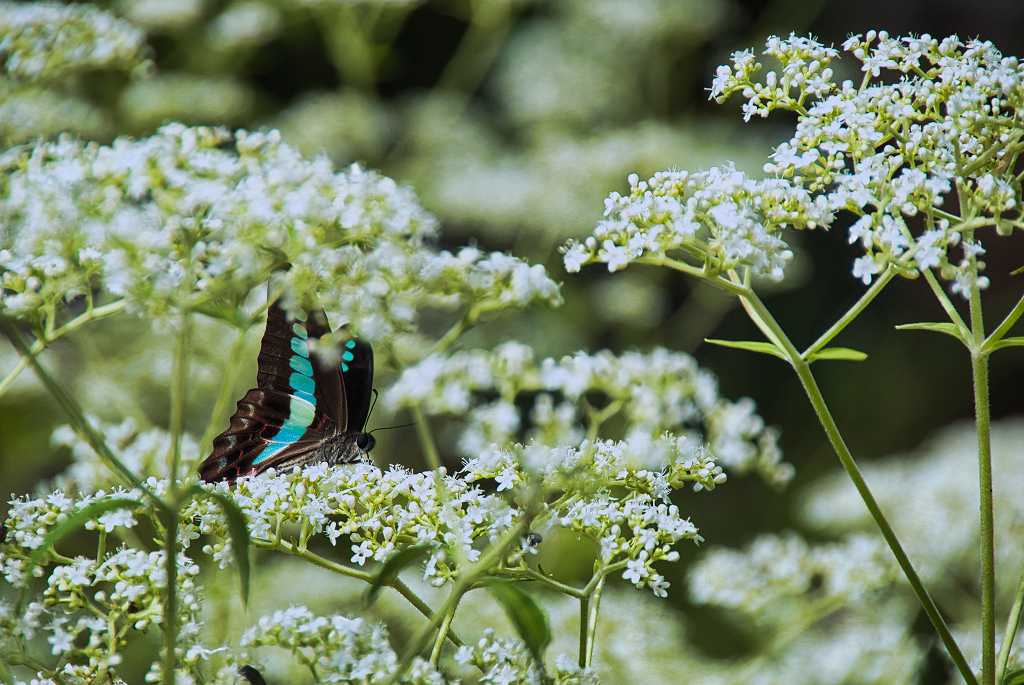 花の形や咲き方などオミナエシに似ていますが見ての通りのシロバナでオトコエシという別種です地元市川市の万葉植物園での撮影ですがここ以外ではあまり見ないかなオミナエシよりも咲きっぷりが豪勢で力強くこの辺りがオトコの名になっているともオミナエシのとの交配種もあるらしいのですが私は見たことがありません写真はちょうどアオスジアゲハがやってきたところですがチョウチョ吸引力はオミナエシの方が上に思います2025.20.05 撮影CAMERA : NIKON D3000LENS : TAMRON 18-270mm F/3.5-6.3 Di II VC PZD (B008)