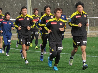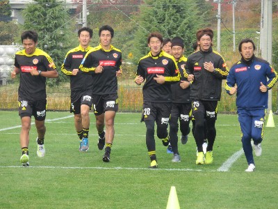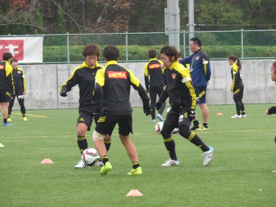 明日はアウェーベアスタで第1ステージホームユアスタで5-0と大勝した鳥栖と対戦。第1ステージみたく簡単には勝てないと思うが、残りリーグ2試合勝利でひとつでも順位を上げるには負けられない試合。チームは2日間非公開で紫山サッカー場で調整して来たが、移動日の本日は泉サッカー場で調整した。ウイルソンのみ別メニュー調整。 ウォーミングアップ後に鳥かご。 来季よりトップ昇格する匠と雅也をフリーマンにして、ひとり多い12対12でミニゲーム。 練習終了。 明日の試合はスカパー以外にもNHK総合でも生放送されます。明日には松本のJ2降格が決まりそうですね。