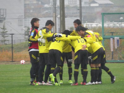 本日ユアスタで開催された浦和Lとのリーグ最終戦。アディショナルタイムの逆転ゴールでチーム創設以来初のリーグ準優勝の好成績で終えた。この辺も後程にUP致します。◎ 仙台 0-1 鳥栖 公式記録キックオフから1分も経たない前半1分に両サイドから崩され、久々にスタメン復帰のFW豊田にゴールを許した。 未だ未だ試合も始まったばっかり、残り89分以上あったが鳥栖GK林の好セーブ連発に得点が出来ない。途中出場の野沢はシュートコースが開いたのにシュートを撃たずに横パス、同じく途中出場の蜂須賀のクロスの精度は論外とゲームの流れを変えられず逆に足を引っ張ったかな。シュート11本中、ハモンが8本とシュートを撃てどもネットを揺らす事無く0-1の完封負けで2連敗。鎌田の出場停止以来、試合前日に2度に渡ってボランチにつけた。本職のミンテ、武井、藤村って・・・。試合が終わったから書けるけど鎌田のボランチ以外にも鳥栖のロングボールを警戒して対策を練った。未だ12位の可能性が残っているので、川崎Fとの最終戦では絶対勝利してほしい。控えメンバーと匠、雅也は雨の泉サッカー場でユースと練習試合を行った。現3年生にとってこの練習試合が最後の試合となった。◎ 仙台 8-0 ユース 40分×2本 【得点】 蜂須賀 金園(2) 西村(3) 匠(2) 6分に蜂須賀がこぼれ球を押し込み先制、16分に杉浦の右CKを金園が頭で合わせて追加点を奪った。ここでレディースの応援の為にユアスタに移動したので見ていません。 トップ練習に参加したが残念ながらトップ昇格出来なかったユースFW本吉と競う上本。