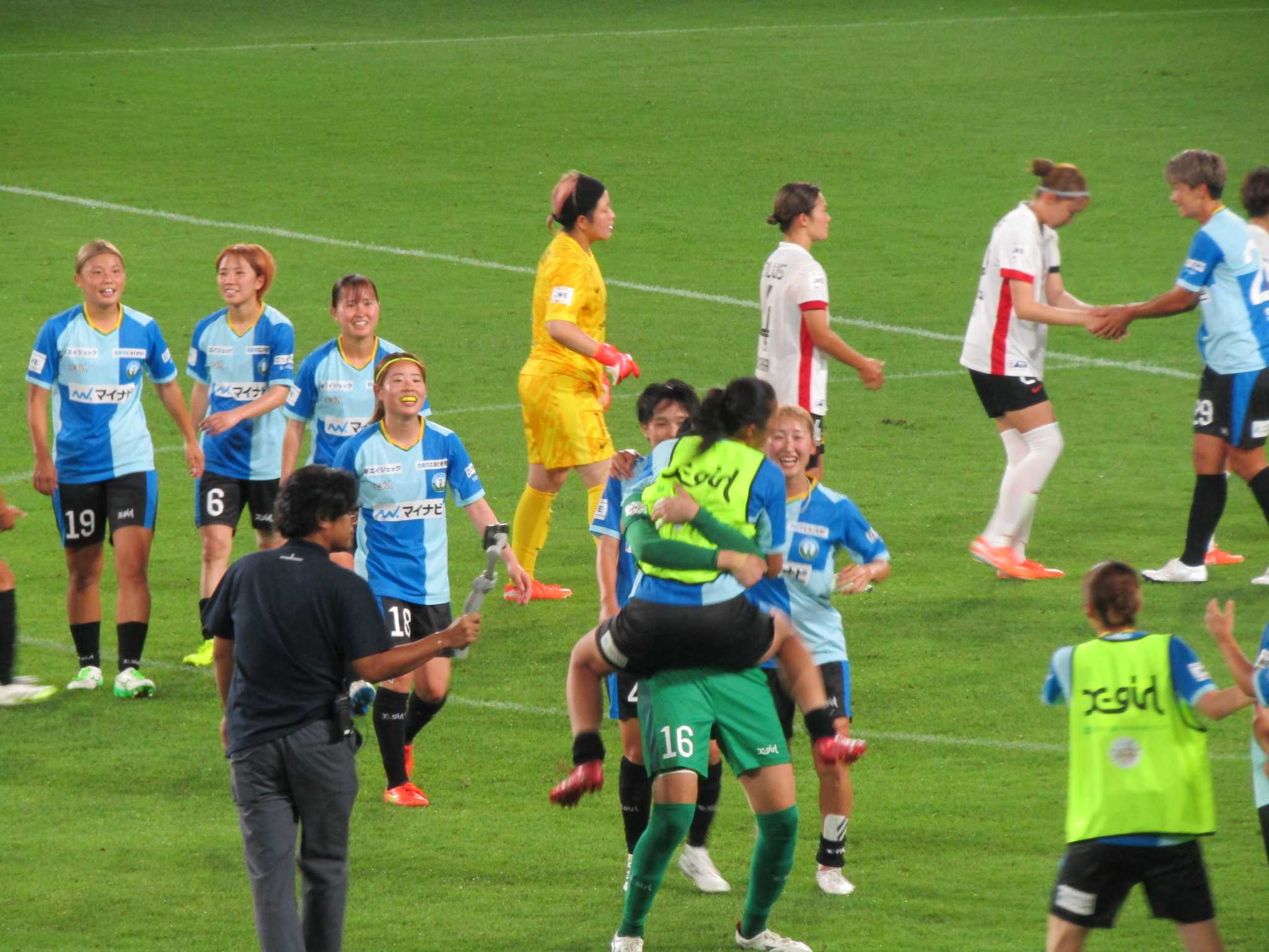 後半に入るとさすがに首位浦和は更に攻撃力UPで仙台に襲いかかるもGK横堀選手が1対1を止めるビックセーブや全員守備で足を攣りながらも最後まで集中を切らさず81分元常盤木学園MF伊藤選手の1点のみで抑え、首位浦和に2-1で勝利した。これで前節新潟戦勝利に続き2連勝で5位に浮上した。