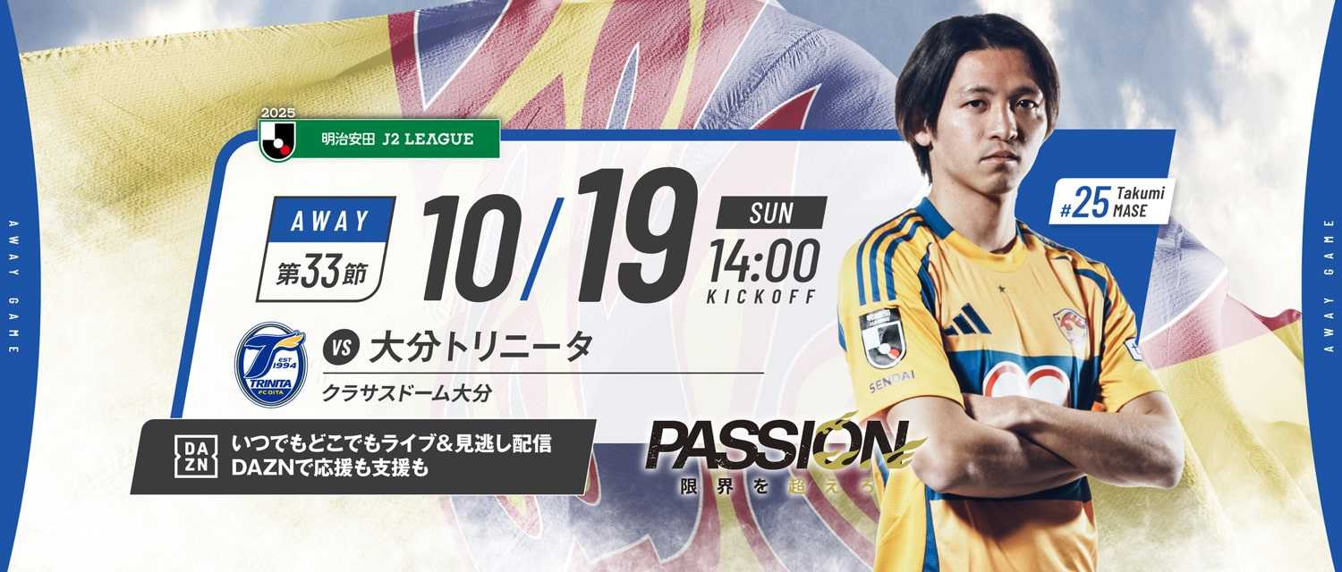 ベガルタはリーグ戦が1週間空き明後日19日(日)アウェークラサスドーム大分での大分トリニータ戦に挑む。引き分けも許されず絶対に負けられない試合はキックオフ14:00。