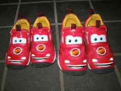 一目惚れして息子たちに買った ライトニング・マックィーンの靴こんなに、『欲しい!!』と思ったのは久しぶりかも。子供たちもカーズが好きなので、大喜びでした。naoには、お下がりがあるのに 可愛い物はついついお揃いで買っちゃいます。先日、この靴を履いて横断歩道を歩いていたら、知らない人に『どこで買ったんですか??』って聞かれました。『やっぱりかわいいよねっ』なんとなく気分の良い一日でした