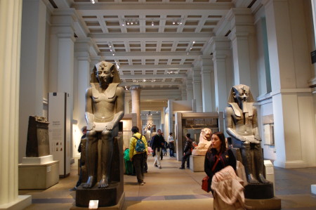 大英博物館内です 今日の夕方、戻りました。 ロンドンを発ったのは、30日。 30日のお昼ころの飛行機が 機体不良のためとかで、いったん乗った飛行機を おろされて、 午後4時半の出発になりました。 それから12時間の飛行時間で やっと成田に着きました。 日付は31日の午後2時でした。 時差が9時間で、 今、夕飯を食べましたが、なんだかよくわかりません。 夜がなくなっちゃったようです。 ロンドンはやっぱり歴史を感じます。 建物は、道の両側がこのとおり 大英博物館は、一番の目的でしたが、 丸々2日間でなんとか全部を見ることができました。 ふうーっ 博物館は、展示物が膨大な量ですが、 ナショナルギャラリーという美術館も半端な量ではありません。 それがまた、なんと、入場料がタダなの。 (タダなので、2日間も入り浸り) こんなところに、イギリスの文化に対する姿勢を感じます。 まあもっとも、エジプト、ギリシャなど全世界から 根こそぎ持ってきちゃったんだけど、ね 今回の旅行の感想は、おいおい紹介しますね。 コメントいただいた中で、 なんで、ロンドンなのという疑問をいただきました。 お答えです。 ・冬は山歩きがしにくい。 よって観光のシーズンである。(勝手にきめこんでます) たまには外国もいいかも。 ヨーロッパは冬は季節がよくないので、旅費が安い。 ツアーは好まない。 自分たちだけで回れる街がいい。 でもフランス語はさっぱり。 となると、英語で回れるロンドンでしょう。 気温は東京と同じくらい寒い。 でも、東京よりも、空は一日中どんより。 朝は6時半では暗いし、夕方は4時半でもう暗い。 なので、観光には不向きな季節のロンドン行きが安いのです。 なぜロンドンなのかお分かりでしょうか? あ、もちろん、大英博物館を1度は回ってみたいという 「高尚な」理由もあったのですよ