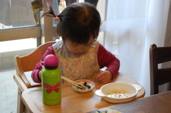 姫が昨日から、我が家に滞在中。 なもんで、やっとPCに向かってます 大好きなお豆をお箸でとるべく奮闘中 TVで、お魚をおろしてたら、 ポツンと 「おしゃかな、痛そう・・」 と言ってました 火曜日まで滞在予定です。 昨日、今日はパパも一緒なので、いいんだけど、 明日、あさっては、昼間は姫とじいじ、ばあばで お留守番です。、 ひとりで、大丈夫かねえ? さあ、分からん。。。 よ~く言い聞かせてもらわないと、ねえ。 さて、どうなることでしょう