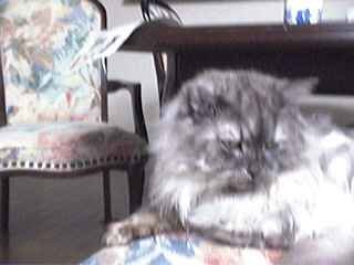 新しい猫缶を貰い、ご機嫌なはずの長老。