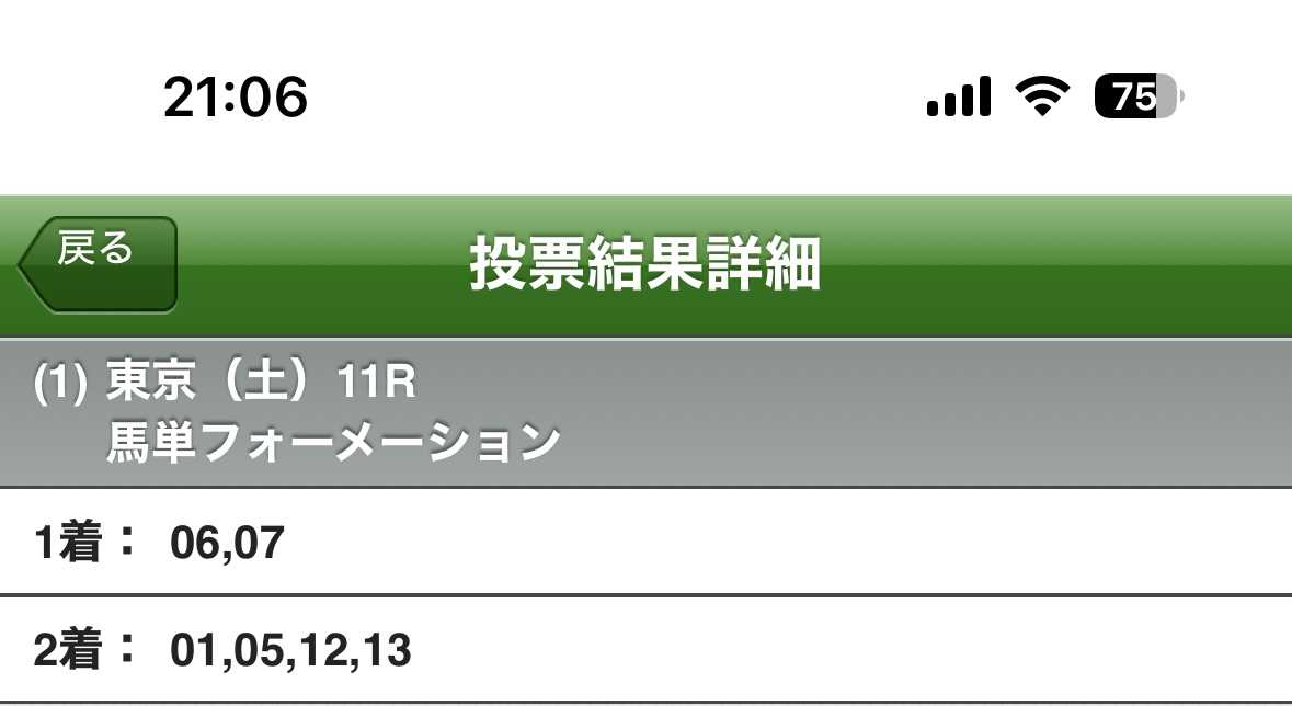 まずは府中牝馬ステークスこちらの買い目は最終追い切りランキングの1位プレサージュリフト2位ディヴィーナ馬単1着固定相手は追い切りがまだ良かった5・1・12・138点13が来てくれれば15万オーバーだったんんですが残念ですが一番安めが来てしまいました。狙っていただけに残念でした。ライラックはあそこまでとは思わなかったので反省します。結果は100円ずつなら800円投資の2580円回収金額は私はいつも1,000円か500ですのでご想像にお任せします。当たった金額を自慢するつもりはありませんので。みんなで冬のクリスマスに向けて金額を増やすだけです。ちなみに私の家ではダイソンのコードレス掃除機を買ってくれと言われました。秋華賞の結果は皆さんいかがでしたか?さすがに強かったって感じでしたね。私の秋華賞の結果はこちらです。何一つカスりもしませんでしたっっw土曜の勝ち分は全て無くなりました。また来週です。現時点の菊花賞本命はタスティエーラです。それでは失礼します。