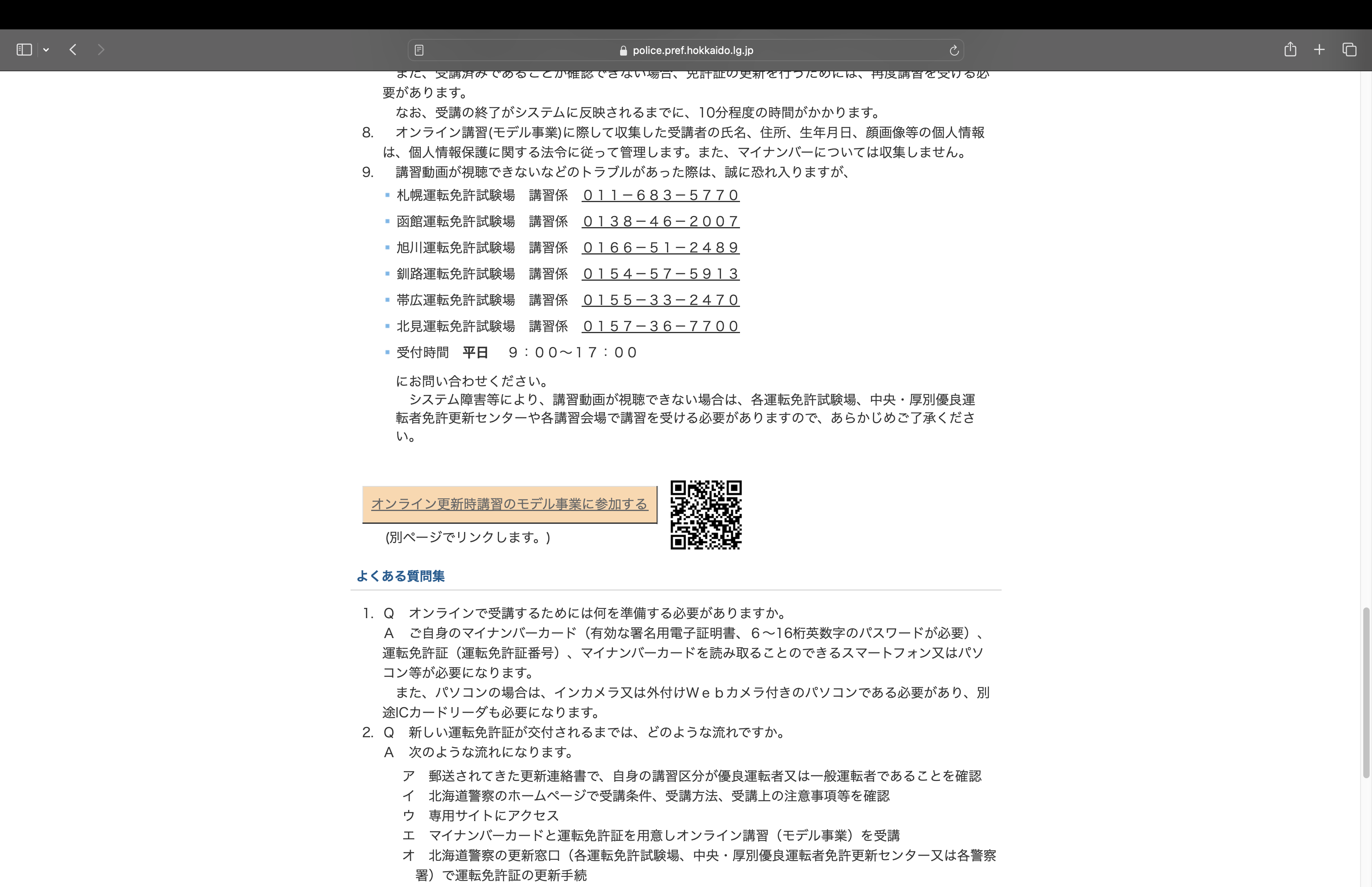 ブロガーではないので見づらいと思いますので要点だけ伝えます。今年から優良運転者、一般運転者の免許更新の手続きがオンラインで可能に1、まずはご自宅に更新手続きのハガキが来る2、マイナンバーカード、免許証を用意3、スマホ、タブレット、PCのいずれかでマイナポータルアプリをインストール4、マイナポータルアプリとマイナンバーを紐付けるここまでは簡単なんですよただアプリとってマイナンバーの番号を打って紐付けなんでw5、お住まいの地域のオンライン更新時講習モデルのご案内を開く6、オンライン更新時講習のモデル事業に参加するをクリック7、開始するをクリック大体の人がこの画面が出ると思いますいやいやOSは最新やし何言ってのこいつ?設定画面を開いてOSを確認してもあれ最新やし合ってると思うんだけどなこのループに入ります。だいじょうぶです。あなたはきっとYahooから開いてないですか?またはなんかよくわからない際から?たとえばSafariから開いてみるちなみに僕はSafariで行けました。なんか違うやつで開き直してみてください。絶対に行けます。後は動画を見るをクリックして本人確認の写真を計3回撮り途中で簡単なクイズを3回やって終わりです。後は後日警察署にハガキと免許証と証明写真と更新にかかるお金4,000円くらいを持って行きオンライン講習を受けました。と受付にいえばすぐに確認していただき住所変わりないか聞かれて視力検査して終わり10分くらいで終わりました。これで講習を受けに会場まで行く時間と手間がなくなりとても楽になりました。後はまた後日免許証が完成したら撮りに行くだけです。この悩み結構数いたし私自身も2時間くらいかかりましたので是非参考にしてください。それでは失礼します。