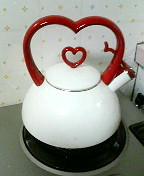 焼けた所は見えんけど、お気に入りのハートやかんとパチリ