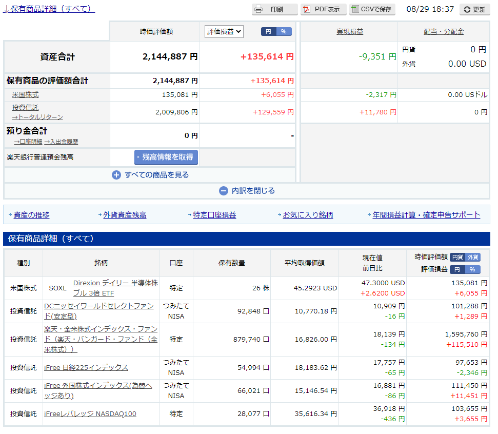 2021/08/29のトータルリターンは 310,199