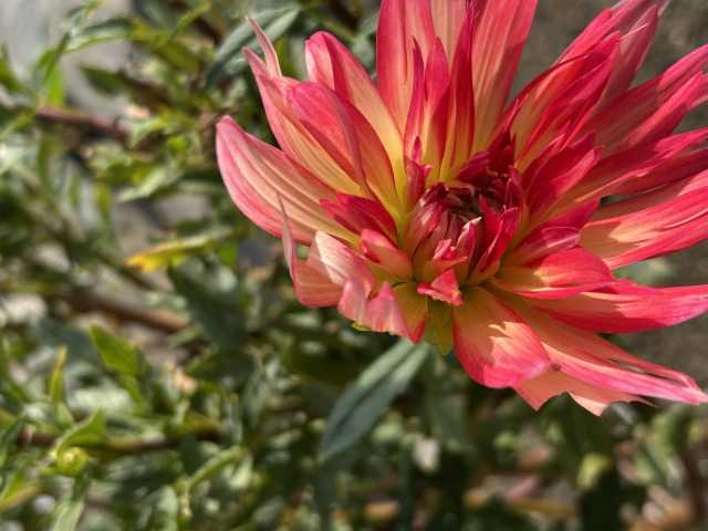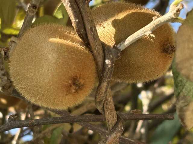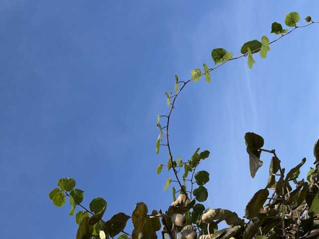 キュウイの枝が 青空に向かって勢い良く伸びていた。