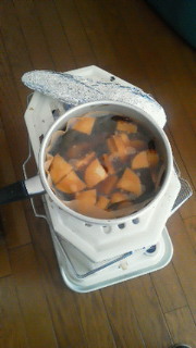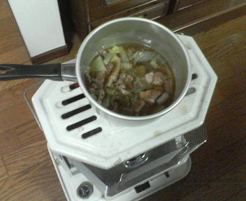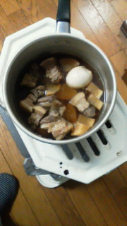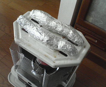 計画停電になってから、エアコンの使用をやめました。寒いときは石油ストーブを使ってますが、お湯を沸かすだけではもったないので、料理を作ってます。今日は、牛スジと豚バラブロックの煮込み。画像は食後なので、ほとんど残ってませんが。。。ぐつぐつとじっくり煮込むので、お肉も柔らかく、なかなかいけます。私はもっぱら酒のつまみに食べました。 昨日は、昼に焼き芋、夜はおでんでした。焼き芋は、ぬれた新聞紙でくるんで、その上からアルミホイルで包み、ストーブの上にのせるだけ。大工さんのおやつにしました。 以前、電子レンジで作ったときは、お芋の大きさによって、加熱時間の調節が必要で、あまりうまくいきませんでしたが、ストーブの場合は、ときどき裏返せば、二、三十分でおいしい焼き芋ができます。やはり、一番のおすすめは焼き芋ですかね。