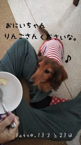 やっと、日が差してきました結構降りました+・+・+昨日、latteがミルクの匂いがする!赤ちゃん返り!!と、浮かれポンチのあほあほな飼い主落ち着いて考えたら嫌な傾向なのに、相変わらず馬鹿者だわwatashi。あぁ~、恐ろしい・・次は何??+・+・+今回、13才を目の前にして、はじめてご飯を食べさすことの難しさを知ったwatashilatteは何があってもご飯を残したことがなかったから・・今までも、悪阻で味覚が変わった時はあったけどお皿を引くまでに、ほとんどすぐ平らげてたので気にも留めなかった。横で人間が大好きな物を食べていても、自分のご飯を平らげてからのおねだりなのでフードを残すことは考えられなかったんですそれが、フードどころか、パンやおやつにリンゴにガム・・大好きな物も、口に入れるが、ペッっと吐くを繰り返し体重も当然減り、5.0キロを切りだしたのには、もうビックリ!あの手この手で、食べさそう!、体重を増加させよう!なんてことになろうとは夢にまで思わなかった。当たり前だと思っていたlatteの食欲。そうじゃないんだよね勝手に老化だと思い、お年寄り扱いしてしまった。そんなlatteも、今は元気でガツガツ食べれるまでに回復!?しました。紆余曲折があり、今はこんな感じに落ち着いています朝ご飯は、カナガン25グラム+鳥の肝のふりかけデザートにひとかけのすりおろしリンゴおやつにlatte用コッペパンお昼ご飯は、ささみを裂いたの、きゅうりを細かく切ったの、少しのパン夕飯は、カナガン25グラム+ささみを裂いたの+ふりかけ+人参とかおやつは、パンやらなんやら・・寝る前に、ガム2センチ程を2種類こんな感じで、楽しませています。latteも満足してるようです体重が増えてきたら、またその都度見直します愛犬、ワンちゃん、イヌ、いぬ犬と暮らすワンコ親ばか日記ポチっとお願いしますm(__)mにほんブログ村