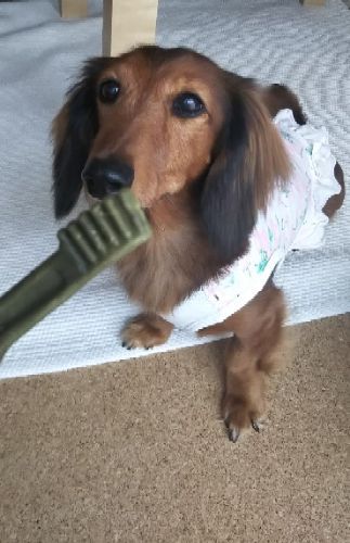 「VS嵐 」を一緒に見ていた夫がテレビに映る大野くんを見て・・ずっと大ちゃんだけをおもっきり応援してきた私に「大野くんは、これ、アイドルとしてどうなん?」て・・( ̄▽ ̄;)とうとう言ったのだもうアイドルじゃなくて船長なんやわ(T_T)たぶん・・彼はもう・・+ + +ラテがはだかの時夫は「おい!ウナギイヌ!来い!」と、声をかけてる私は「おんぶおばけ」みたいと思ってる掴もうとしても、にゅるっと・・滑る( ̄▽ ̄;)抱こうとしても、落としそうになるラテは他のダックスちゃんとちょっと違う・・かなり長い!!ラテが家族になった次の日に、他のダックスちゃんをまじまじと見に行って帰りの車の中で夫がポツリと「ラテって皆と違う!」と呟いた(お値段は同じ( ̄▽ ̄;))ほら、突然・速攻、連れてきたからさっ(^_^;うちにきたラテは体の長いダックスでした!!そして、毛が短い( ̄▽ ̄;)しか~し歴とした「ミニチュアダックスフント(ロング)」なのだーお友達家族に紹介したら大きいから、スタンダードだ!とこそこそ言われ、思われたり( ;∀;)美容院に連れてけば足が長いから成長したら違う犬になる!( ̄▽ ̄;)とか・・酷いことを言われたものだ(T_T)ほら、血統書要らないと断ったからさっどっちでもいいんだけどなんとなく主治医の先生に尋ねたら(聞くんかい( ̄▽ ̄;))「間違いなく、ミニチュアダックスです!」と怒られた!!スタンダードはこんなもんじゃない!とどっからどうみても、ロングコートのミニチュアダックスです!と、断言してくれた(^ー^)ありがとう、先生短くカットして頂いているのでね(^_^;「あたちへん?」「ラテはとーーってもべっぴんさんですよ」筋肉粒々な、もうすぐ13才と4ヶ月5.5キロ!今日も元気印のミニチュアダックスフント(ロング)のラテでしたー愛犬、ワンちゃん、イヌ、いぬ犬と暮らすワンコ親ばか日記ポチっとお願いしますm(__)mにほんブログ村