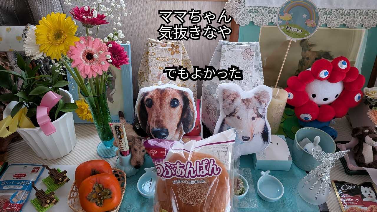 おはようございますm(_ _)mクマさんは柿が大好物らしいですしかーし、渋柿は食べないらしい私だって渋柿食べへんもん( *¯ 罒¯*)イーダパ「誰と競ってんねん(´`;)」クマとやよ(๑・㉨・๑)⋆┈┈┈┈┈┈┈┈┈┈┈┈┈┈┈⋆昨日は病院の予約日でした全ての検査結果が出揃いました今年は嫌な事も頑張った頑張ったのは先生かー?ラテいないので、もうこーなったら自分の話です( ̄▽ ̄;)結果発表ってやたら緊張しますよね私だけかな??まだまだ生きたい?いや、生きられるならなるべく元気で過ごしたいなとか意味不明な事色んな事を考えながら一人待つ( ̄▽ ̄;)予約してるのに結構待たされたので最後どーでもよくなってましたが(汗)結果はとてもよかったので嬉しい(≧ᴗ≦)今やってる事が間違いではないなと。パパちゃんにちょっと教えてあげた来年に繋げられるよう精進します^^後、気になる、やってみたい事があるのでその、気になってる事を一年続けてみようと結果良かった日だけ、思うアホなのでした(汗)らっら~♪るっる~♪に負けへんようにおばちゃんもがんばるわ~^^だから、ララちゃんルルちゃんそして、嵐くんも頑張れーー!!だーかーらーΣ\( ̄д ̄;)ォィォィ誰と比べてるんや?って( ̄▽ ̄;)私の大事なお友達とやん(⁎•ᴗ‹。)ネッはい( ꈍᴗꈍ)ご褒美にアンパン買ってきて(笑)食べずにらてくりにお供えしました(^^;ママちゃんを見守ってくれたお礼ね(≧ᴗ≦) 何の変哲もないただのアンパン(•'●'•)安上がりな私です(🟠'🔴'🟠)#ミニチュアダックス ブログ村ハッシュタグ遊びに来てくださりありがとうございますm(_ _)m↓ポチっと応援していただけると嬉しいです(*ˊᵕˋ*)にほんブログ村