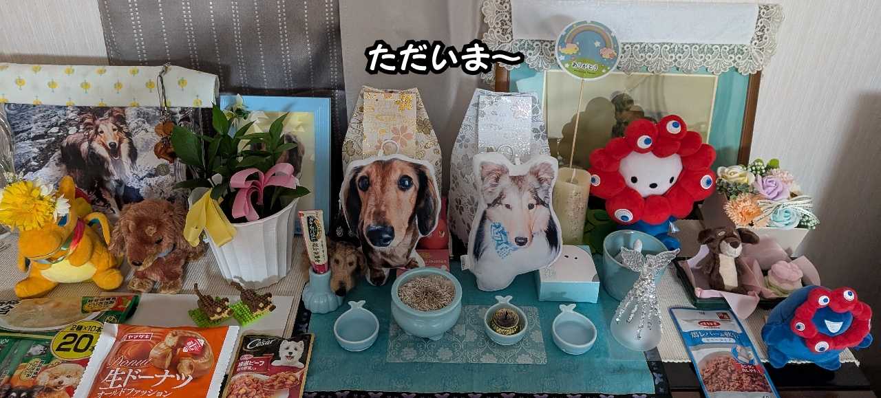 おはようございますm(_ _)m今日は久しぶりの良いお天気です+++基本、持ち帰った物は祭壇に並べてラテとクッキーにお裾分けスタイル「ラテー!食べやー!!」「クッキー!食べててなー!!」と、二声掛けてますが、全て基本未開封です(ーωー;)食べてやー!って言われても開封してなかったら食べられへんよなぁ(;;)するとパパちゃんが「ラテは魔法使いやから中身だけ綺麗に食べられるねんで(˙罒˙ )」と。(๑′ฅฅ‵๑)ププッ!! ええことゆーやん^︎^︎そーやったそーやったわ(˶ᐢᗜᐢ˶)ラテはドビーやったわ(≧ᴗ≦)ラテはわが家の妖精でした(*´艸)(艸`*)ププッムフフ( *´艸`)毎日祭壇山盛盛盛でいくよ♪お陰様で未開封の食べ物も心置き無くお供えできるようになりました𖤐 #ミニチュアダックス ブログ村ハッシュタグ遊びに来てくださりありがとうございますm(_ _)m↓ポチっと応援していただけると嬉しいです(*ˊᵕˋ*)にほんブログ村