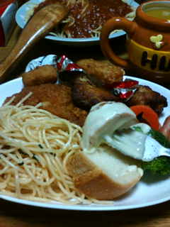チーズフォンデュとチキン・タラコスパにミートスパにサンドイッチでした☆ヾ(^▽^)ノ