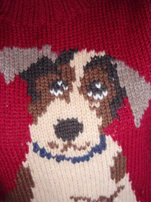 、、、送ってくれたセーターです。 お正月になるといつも着ております。 私の胸を撮りました。(*^_^*) 。 めでたさに免じてくださいませ。