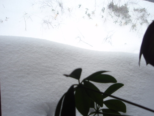 。。。嶺線のように見えるような、 軒下の雪の丈です。 室内の植物が私の背丈以上なのですが、 こんなの初めてです。