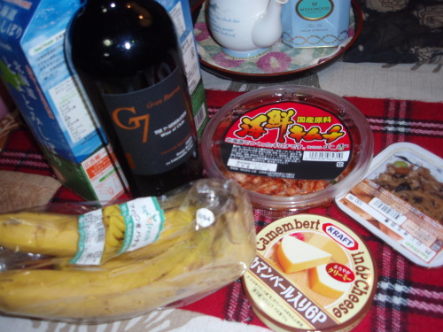 。。。で、今日はとてもいい日になりました! コマーシャルにそそられてセイコーマートで買ったワインです。 こんな味なのですね。。。美味しいです。 カマンベールチーズが良く合います~! とても良く。。。ま・わ・り・そ・う・で・す!!