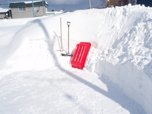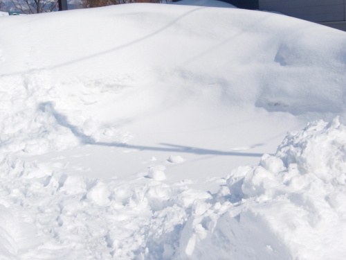 うちの駐車場?がついに閉鎖?になった。体力も心力も限界です。それでも玄関前に一台、車庫の前に縦列で二台はとめられる。フゥ~!車庫の横の積雪は屋根に届いちゃった!今更ながら異常気象なのだ!でも、きょうは、ぽかぽか日和で純白の雪がきらきら反射し輝いていました。高く積もった雪を踏み台に簡単に木登りができました。雪に囲まれても心はあれやこれやと春の土の上を走っておりました。 季節外れのお便りでゴメンナサイ!