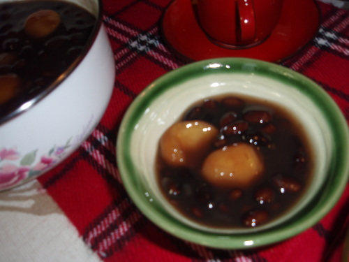 暇なので黒豆を煮ることにしました。 栗の甘露煮の大きな瓶が目に入りました。 塩梅も良くとても美味しい善哉が出来ました。 明日はリクエストに応えて、ざんぎと蕎麦寿司を作ります。 下ごしらえをした鶏肉は冷蔵庫で プンプンゆっくり眠っております。 おやすみなさい!