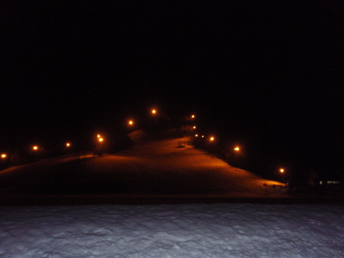 二月の雨の日の夜間スキー場の前を通りました。 人影を探していましたら、一人滑り降りてきましたが、、、。 出かけるときは嘘のように雪のない幹線道路でしたが、 さすが帰りは打って変わって吹雪いて路面が真っ白です。 油断は出来ません! 上空を低気圧が通過中なのですね。 またどんなに荒れることでしょう。 九日の句の日は欠席しよう。 楽しみが一つ潰れそう! 雪の世界はもう十分堪能しました。 心は移り、雪の下の緑が恋しいです。 温泉のぬくもりがあるうちに寝ることにします。