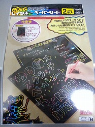 今までなかった素敵おもしろ商品 だれでもデコったような素敵カードが簡単に 100均って面白いものがいろいろありますよね。 新製品や注目商品は毎回見るのが楽しみ。 今日はどんなものがあるのかな~って ふらっと寄り道するのが好きです 今までこんなのあったっけ?? これ面白いという隠れヒット商品にも 時々出会えたりするからたまらない 最近発見したワザアリなハンドメイド商品はこれ 『レインボーペーパー』 一見するとマットな黒の紙なんですが 触り心地は黒いスクラッチカードの巨大なのみたいかな 爪でカリカリするとはがれそうな感じ。 これに付属のプラスチックペンで文字を書くと… 文字がレインボー色に 黒いところどこを書いても虹色になります。 色の出方は書いてみないとわからない。 でも全てグラデーションで出て可愛い ちょこっと文字を書くだけで こんな可愛いカード風に仕上がります 台紙に貼って 文字やイラストをどんどん書き込んでいけば デコったカードの出来上がり すっごい簡単なのに どんな風にできてるのと 驚きと楽しさ満載でしょ 唯一の注意は擦れると剥がれやすいこと。 慎重に扱わないとこの黒塗りちょっとのひっかけで取れちゃいます。 2枚セットなので1回買うとたっぷり使えますよ。 お祝いメッセージやいろんなシーンに 使ってみてくださいな、楽しいですから 面白かったらぽちっと1票お願いします。人気blogランキングへ にほんブログ村