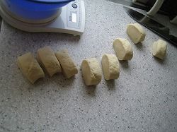 発酵した生地を、まずは棒状にのばして