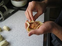 肉だねを包んでいきます