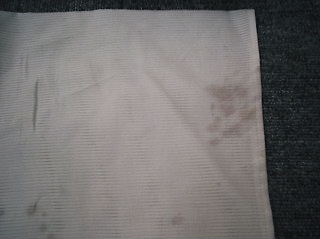 朝晩が涼しくなってきました。夏もそろそろ終わりに近づいています。今日は白地の襦袢に赤ワインが付いてしまったものの紹介です。われわれの業界ではいかにして落ちにくい赤ワインをどれだけきれいに落とすことができるかが、腕の見せ所です。まず下はついた状態です。そして下のような薬品で落としていきます。そして次はきれいに落ちた状態です。なんとか赤ワインを落とす事ができました。基本的に落ちませんという言葉がきらいですので、日々研究を続けていこうと思います。ホームページのほうから、リンクしてあります、オークションでとびっきりの丸洗い、洗い張りキャンペーンが見られます。よかったら見に来てください。HP http//www.wasen116.com